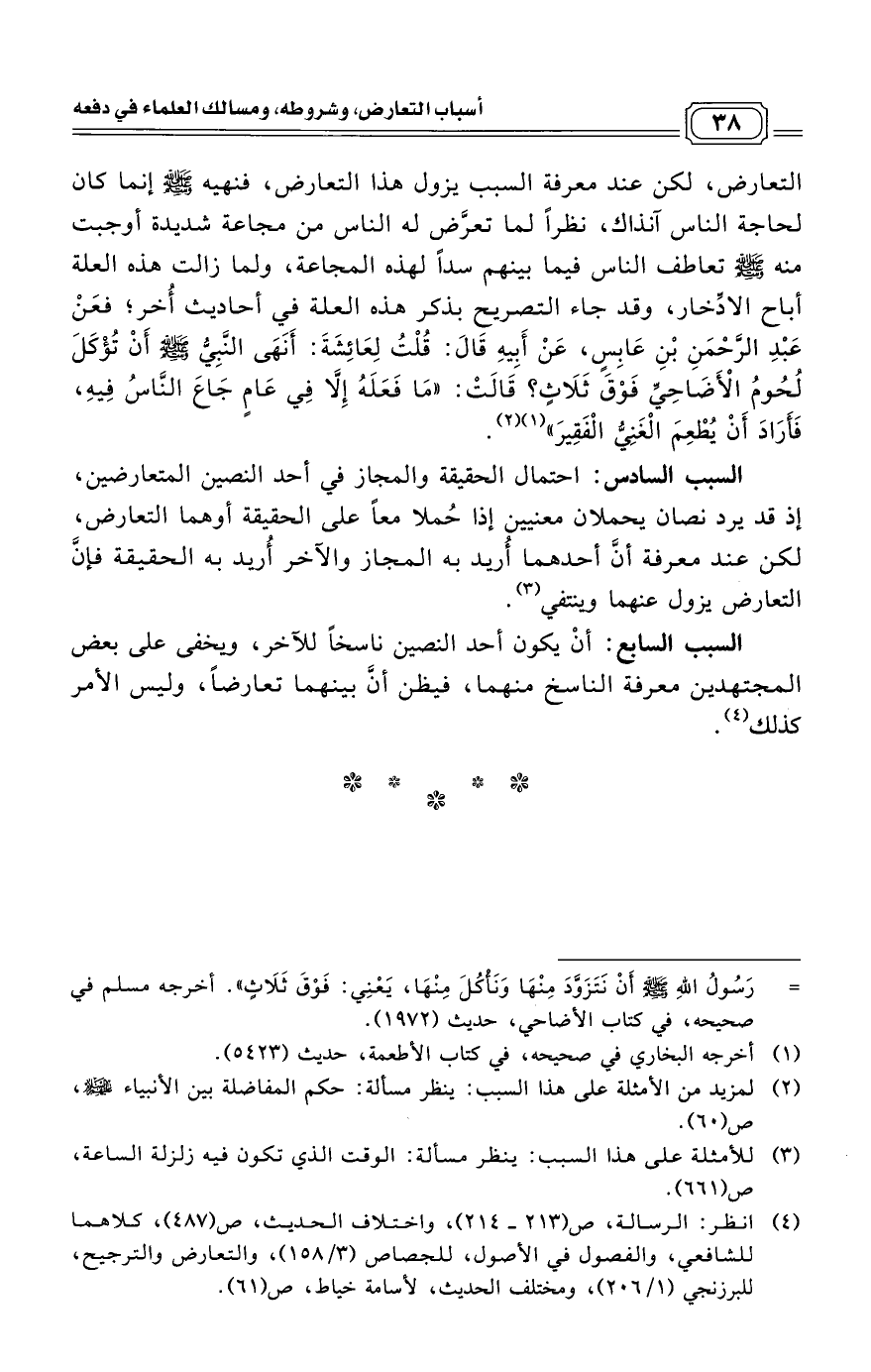 (¬4) انظر: الرسالة، ص (213 - 214)، واختلاف الحديث، ص (487)، كلاهما للشافعي، والفصول في الأصول، للجصاص (3/ 158)، والتعارض والترجيح، للبرزنجي (1/ 206)، ومختلف الحديث، لأسامة خياط، ص (61).