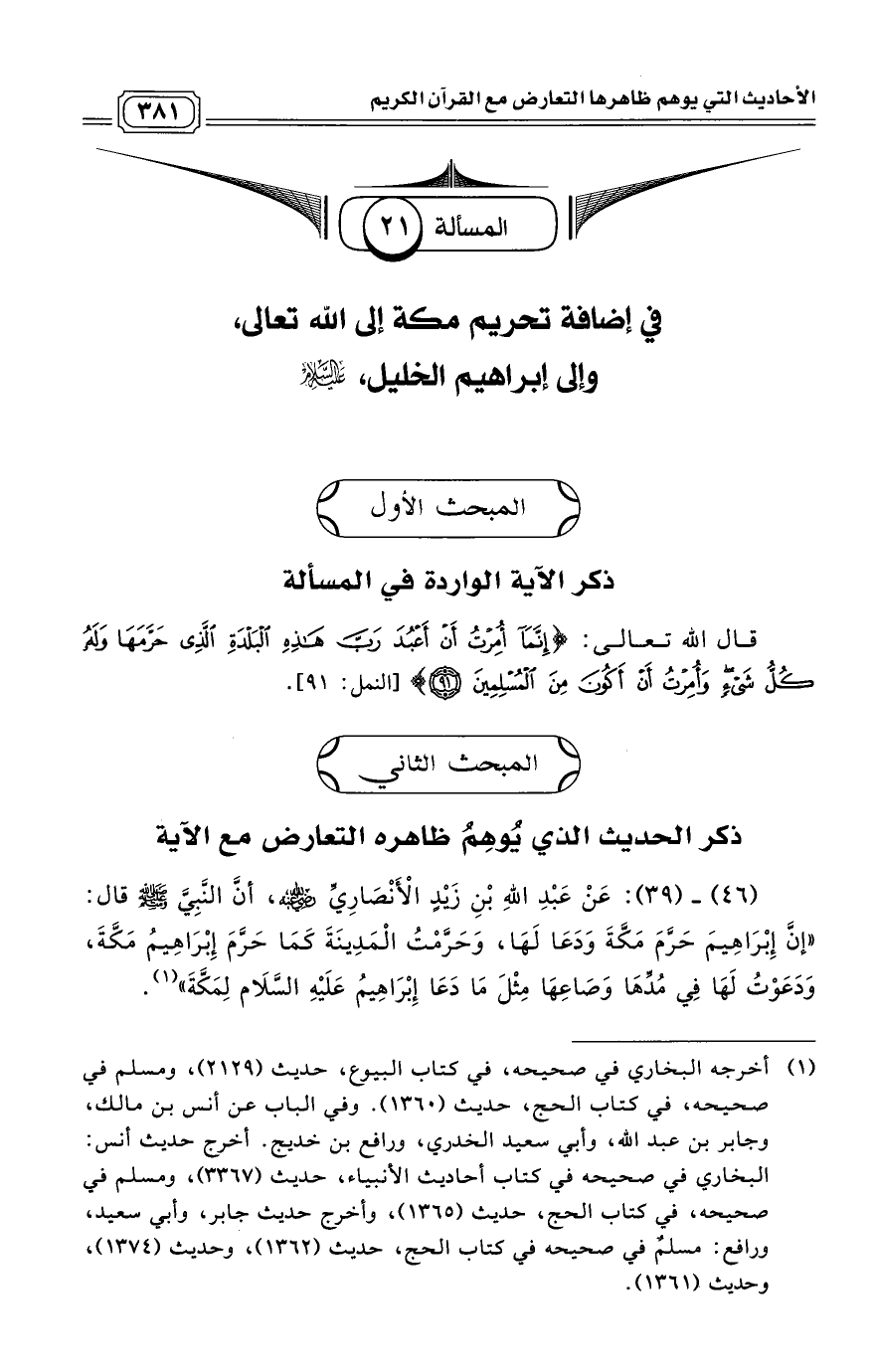 المسألة [21]: في إضافة تحريم مكة إلى الله تعالى، وإلى إبراهيم الخليل، عليه السلام.
