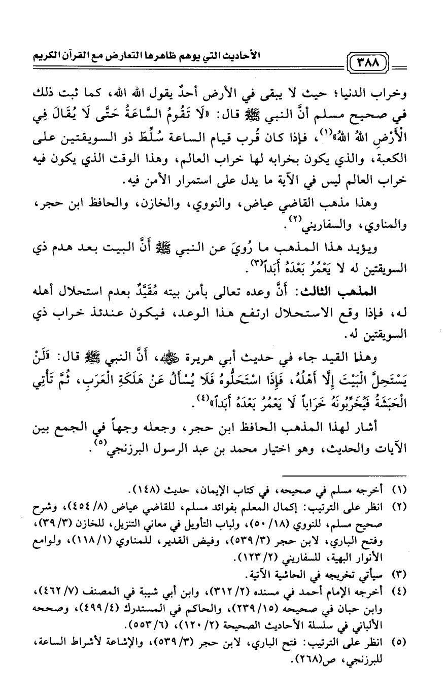 (¬5) انظر على الترتيب: فتح الباري، لابن حجر (3/ 539)، والإشاعة لأشراط الساعة، للبرزنجي، ص (268).
