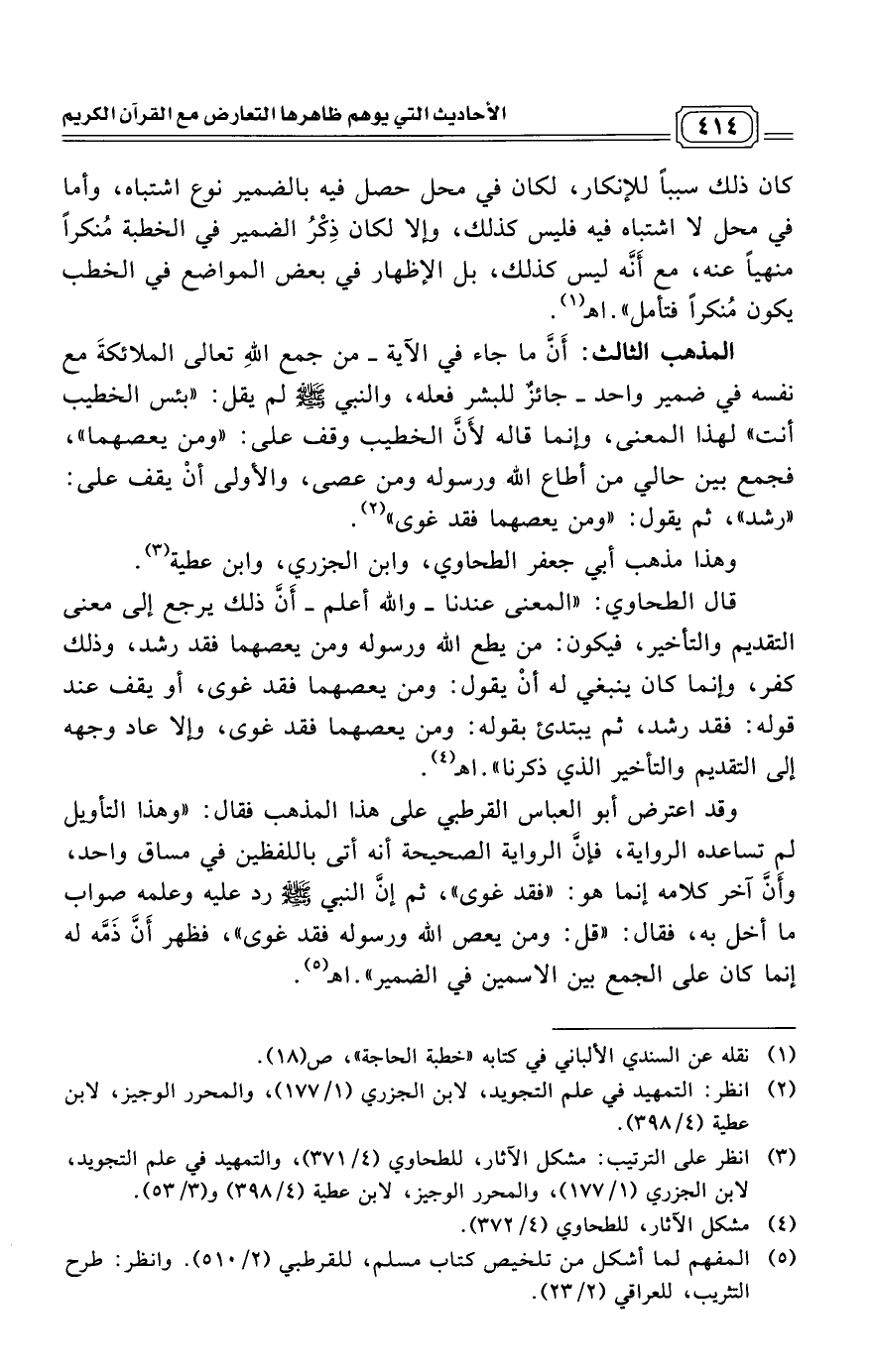 (¬3) انظر على الترتيب: مشكل الآثار، للطحاوي (4/ 371)، والتمهيد في علم التجويد، لابن الجزري (1/ 177)، والمحرر الوجيز، لابن عطية (4/ 398) و (3/ 53).