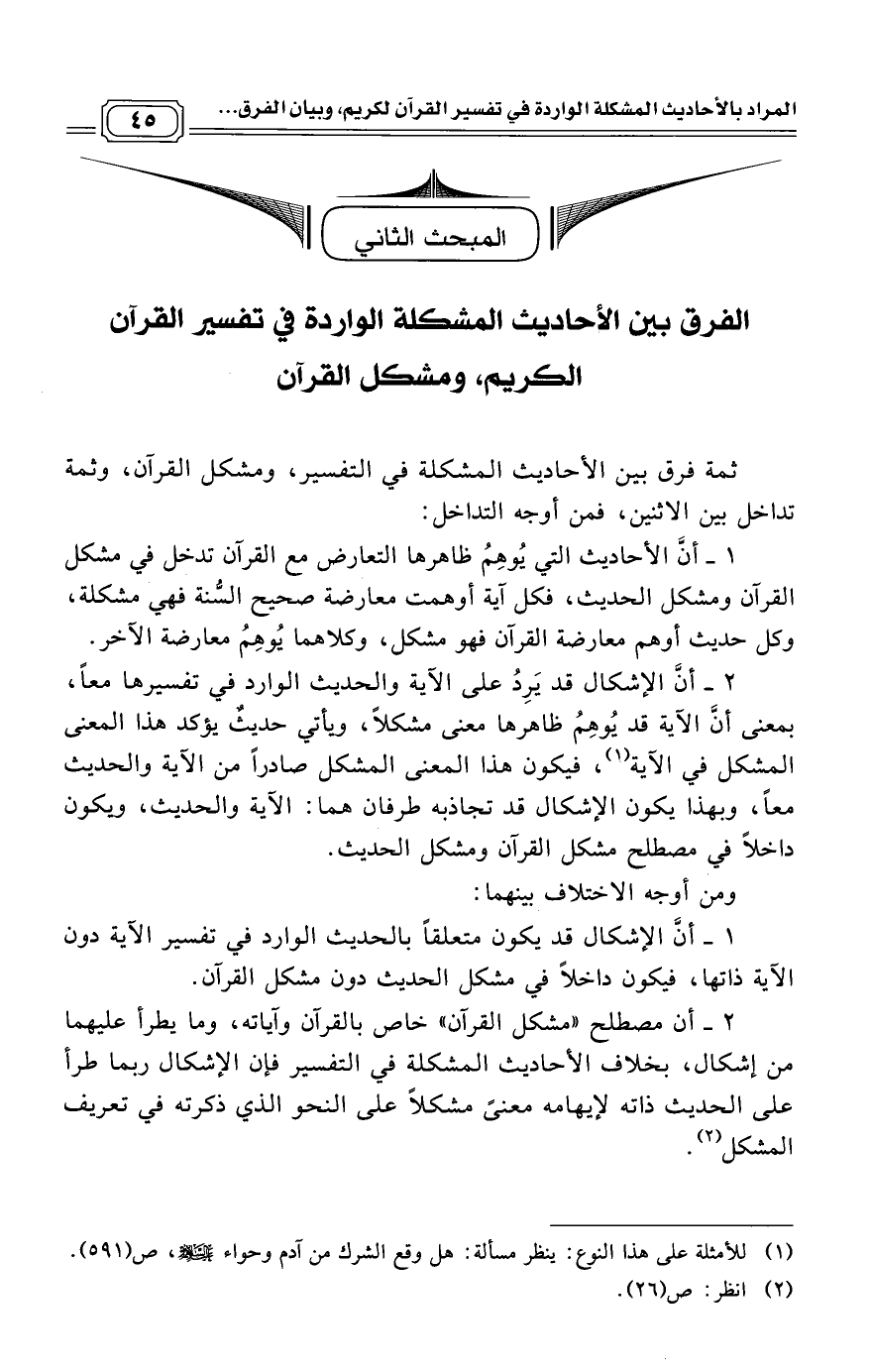 ثمة فرق بين الأحاديث المشكلة في التفسير، ومشكل القرآن، وثمة تداخل بين الاثنين، فمن أوجه التداخل: