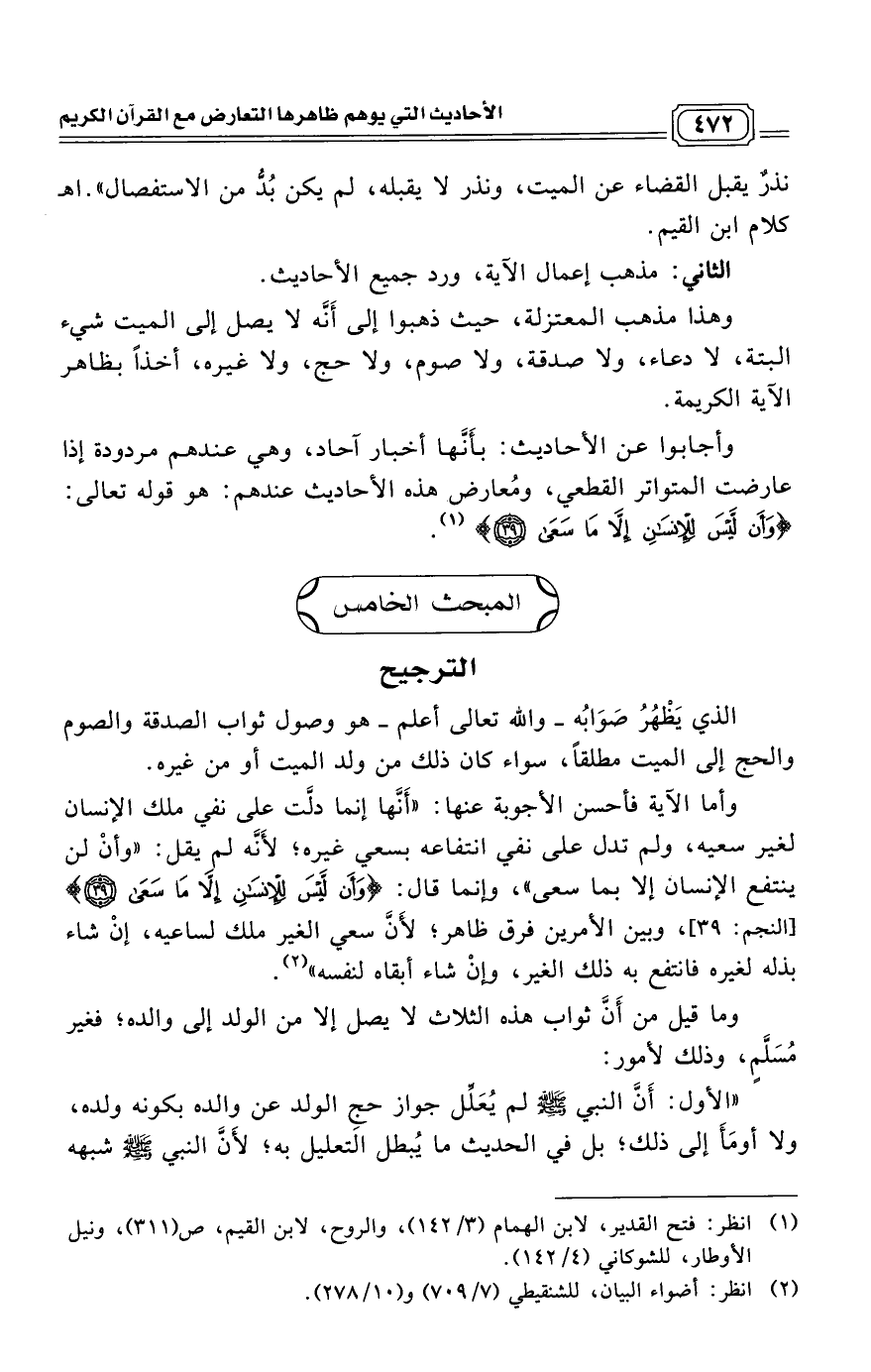 المبحث الخامس: الترجيح: