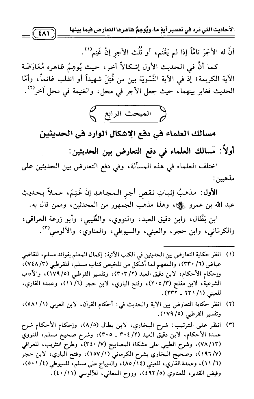 (¬1) انظر حكاية التعارض بين الحديثين في الكتب الآتية: إكمال المعلم بفوائد مسلم، للقاضي عياض