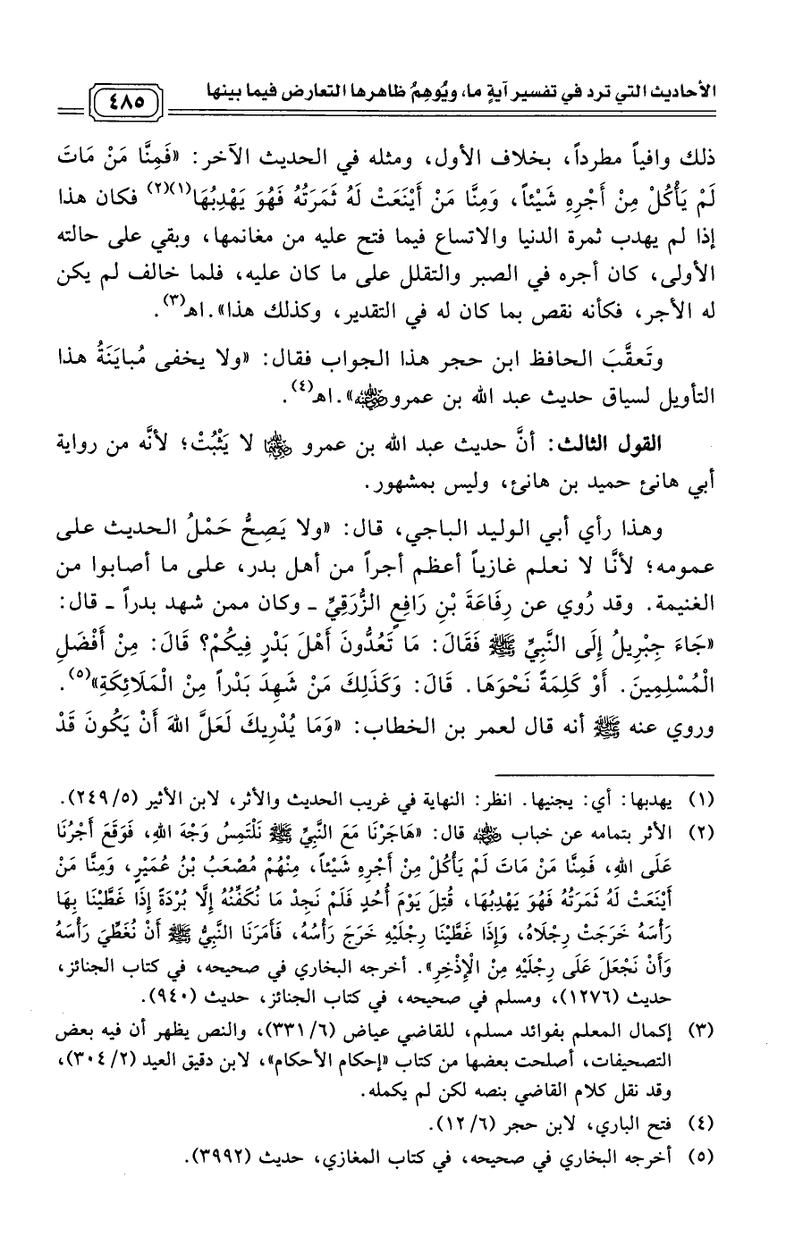 (¬3) إكمال المعلم بفوائد مسلم، للقاضي عياض (6/ 331)، والنص يظهر أن فيه بعض التصحيفات، أصلحت بعضها من كتاب «إحكام الأحكام»، لابن دقيق العيد (2/ 304)، وقد نقل كلام القاضي بنصه لكن لم يكمله.