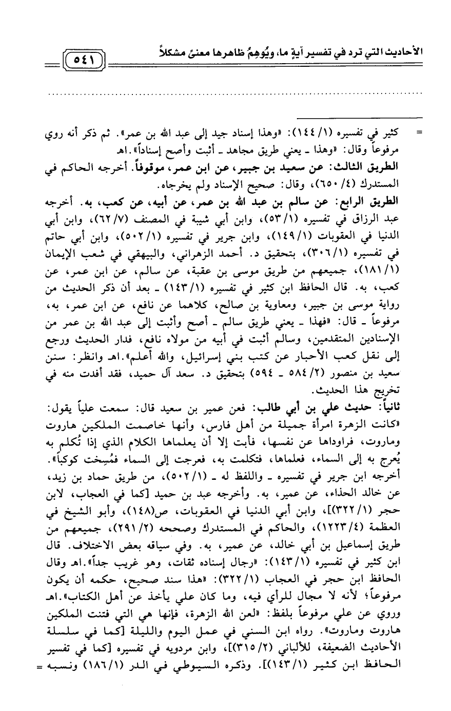 = كثير في تفسيره (1/ 144): «وهذا إسناد جيد إلى عبد الله بن عمر». ثم ذكر أنه روي مرفوعاً وقال: «وهذا - يعني طريق مجاهد - أثبت وأصح إسناداً». اهـ