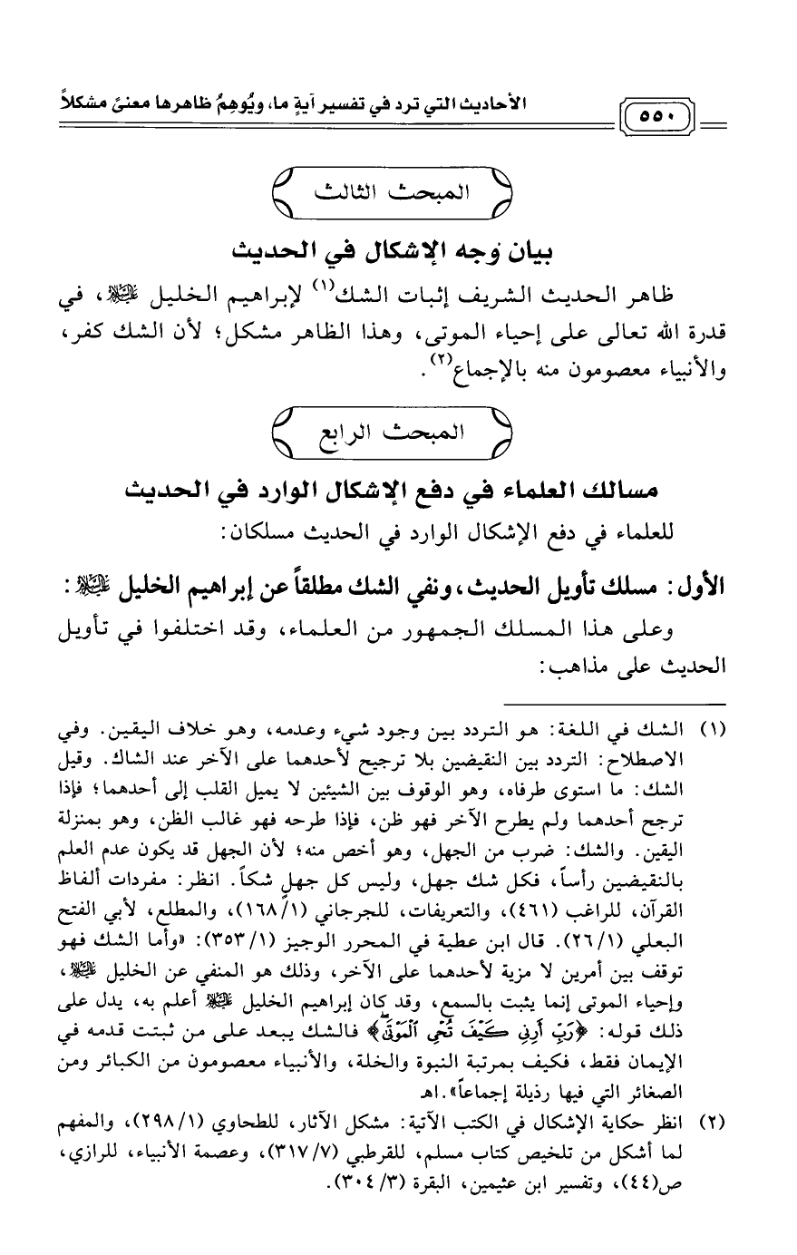 الأول: مسلك تأويل الحديث، ونفي الشك مطلقاً عن إبراهيم الخليل عليه السلام.