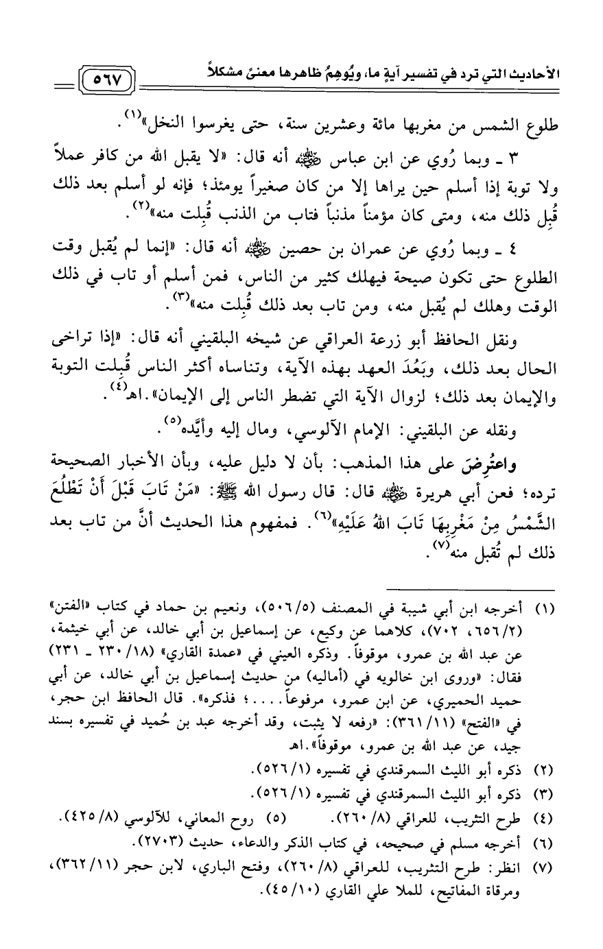 (¬7) انظر: طرح التثريب، للعراقي (8/ 260)، وفتح الباري، لابن حجر (11/ 362)، ومرقاة المفاتيح، للملا علي القاري (10/ 45).