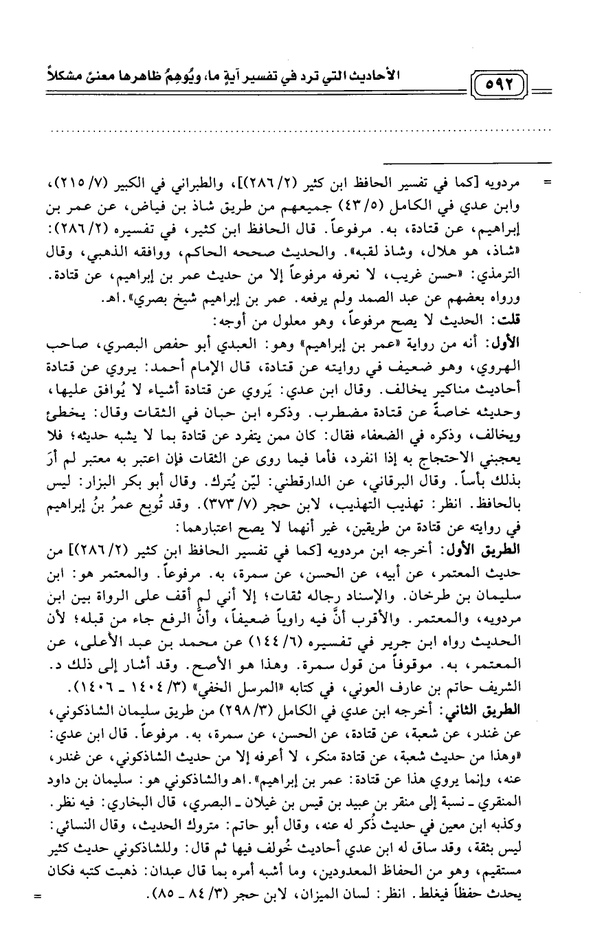 كتاب الأحاديث المشكلة الواردة في تفسير القرآن الكريم