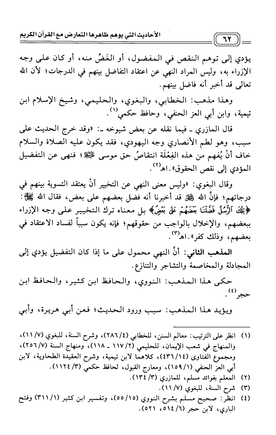 المذهب الثاني: أنَّ النهي محمول على ما إذا كان التفضيل يؤدي إلى المجادلة والمخاصمة والتشاجر والتنازع.