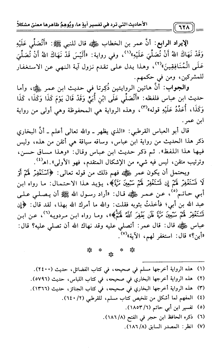 (¬4) المفهم لما أشكل من تلخيص كتاب مسلم، للقرطبي (2/ 640).