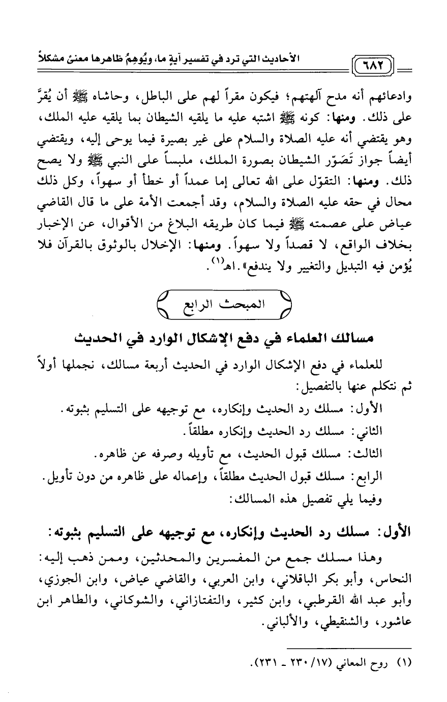 وهذا مسلك جمع من المفسرين والمحدثين، وممن ذهب إليه: النحاس، وأبو بكر الباقلاني، وابن العربي، والقاضي عياض، وابن الجوزي، وأبو عبد الله القرطبي، وابن كثير، والتفتازاني، والشوكاني، والطاهر ابن عاشور، والشنقيطي، والألباني.