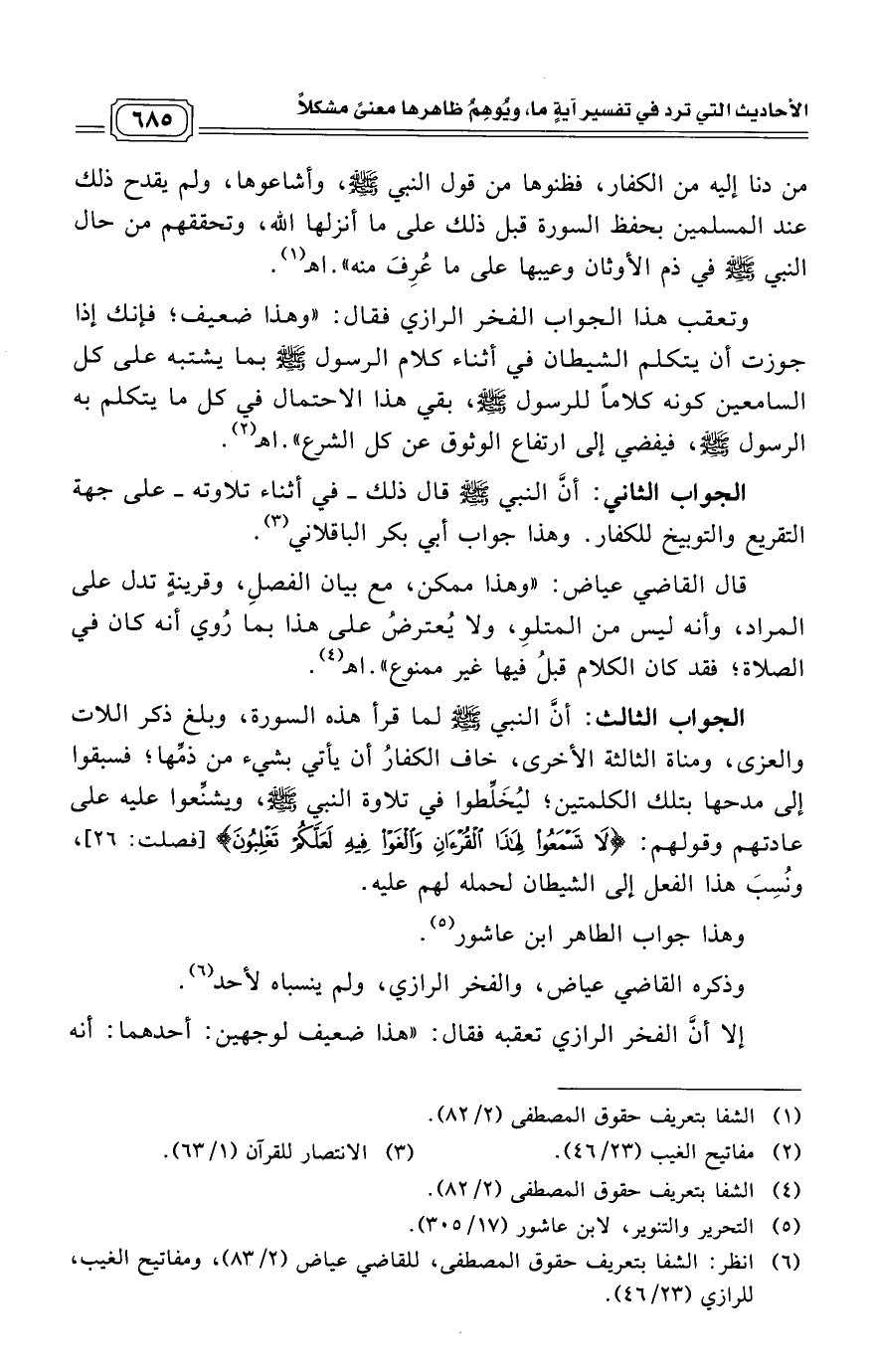 (¬6) انظر: الشفا بتعريف حقوق المصطفى، للقاضي عياض (2/ 83)، ومفاتيح الغيب، للرازي (23/ 46).