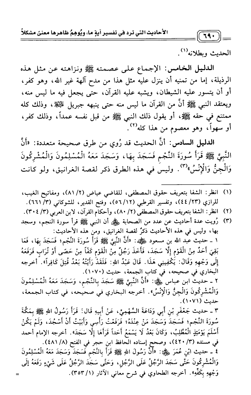 (¬1) انظر: الشفا بتعريف حقوق المصطفى، للقاضي عياض (2/ 81)، ومفاتيح الغيب، للرازي (23/ 44)، وتفسير القرطبي (12/ 56)، وفتح القدير، للشوكاني (3/ 661).