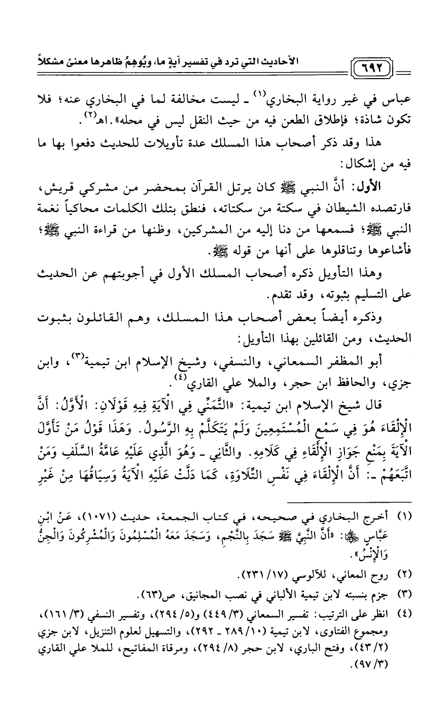 (¬4) انظر على الترتيب: تفسير السمعاني (3/ 449) و (5/ 294)، وتفسير النسفي (3/ 161)، ومجموع الفتاوى، لابن تيمية (10/ 289 - 292)، والتسهيل لعلوم التنزيل، لابن جزي (2/ 43)، وفتح الباري، لابن حجر (8/ 294)، ومرقاة المفاتيح، للملا علي القاري (3/ 97).