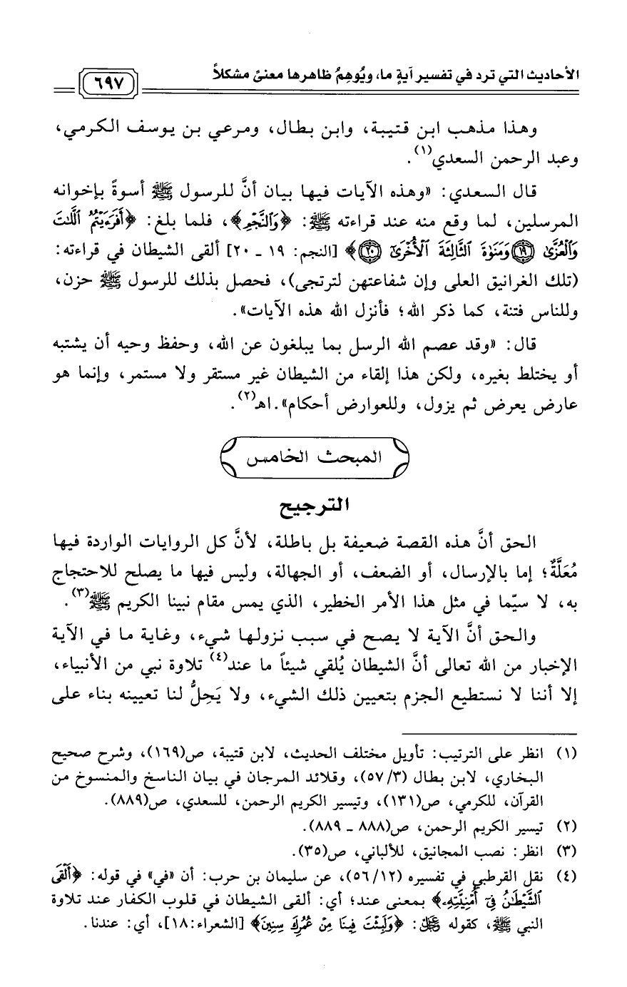 (¬1) انظر على الترتيب: تأويل مختلف الحديث، لابن قتيبة، ص (169)، وشرح صحيح البخاري، لابن بطال (3/ 57)، وقلائد المرجان في بيان الناسخ والمنسوخ من القرآن، للكرمي، ص (131)، وتيسير الكريم الرحمن، للسعدي، ص (889).