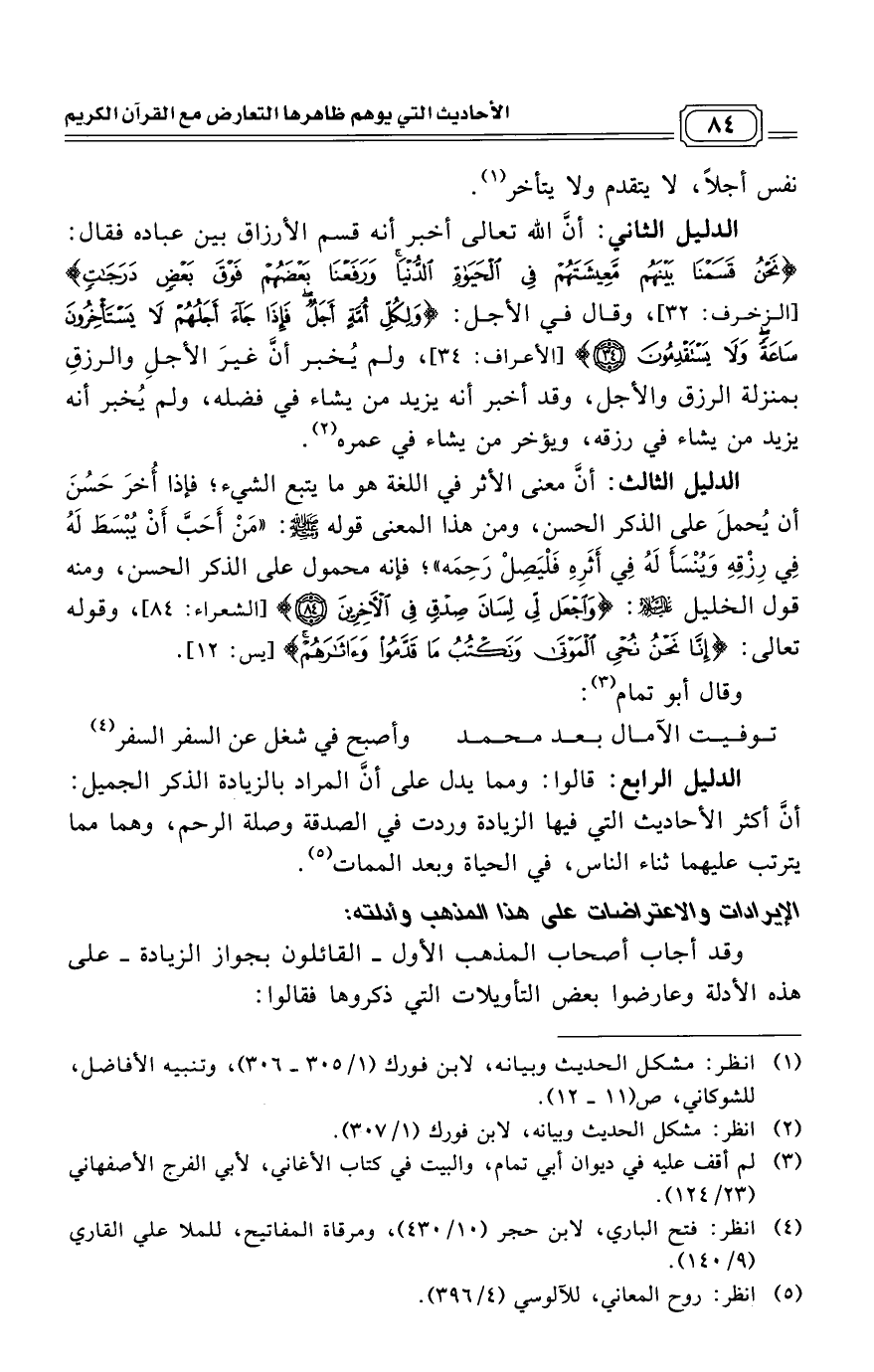 الدليل الرابع: قالوا: ومما يدل على أنَّ المراد بالزيادة الذكر الجميل: أنَّ أكثر الأحاديث التي فيها الزيادة وردت في الصدقة وصلة الرحم، وهما مما يترتب عليهما ثناء الناس، في الحياة وبعد الممات. (¬5)