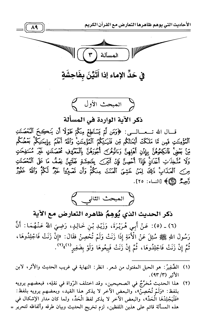 (¬2) هذا الحديث مُخرَّجٌ في الصحيحين، وقد اختلف الرّواة في نقلِه، فبعضهم يرويه بلفظ: "وَلَمْ تُحْصِنْ"، والبعض الآخر لا يذكر هذا القيد، وبعضهم يرويه بلفظ: "فَلْيَجْلِدْهَا الْحَدَّ"، والبعض الآخر لا يذكر لفظ الْحَدِّ، ولما كان مدار الإشكال في هذه المسألة قائم على هذين اللفظين، لزم تخريج الحديث وبيان طرقه وألفاظه لتحرير =