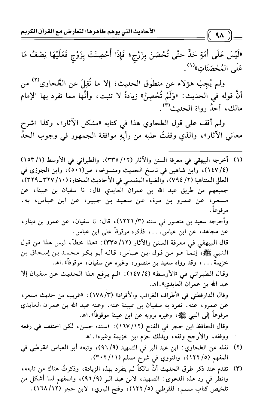 (¬2) نقله عن الطحاوي: ابن عبد البر في التمهيد (9/ 96)، وتبعه أبو العباس القرطبي في المفهم