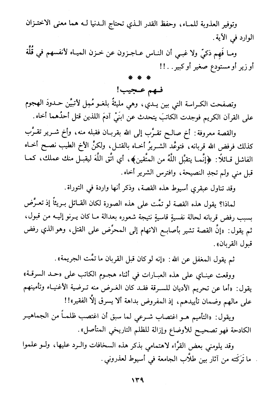 وتصفحت الكراسة التى بين يدي، وهى مليئة بلغو ممل، لأتبين حدود الهجوم على القرآن الكريم، فوجدت الكاتب يتحدث عن ابنى آدم اللذين قتل أحدهما أخاه.