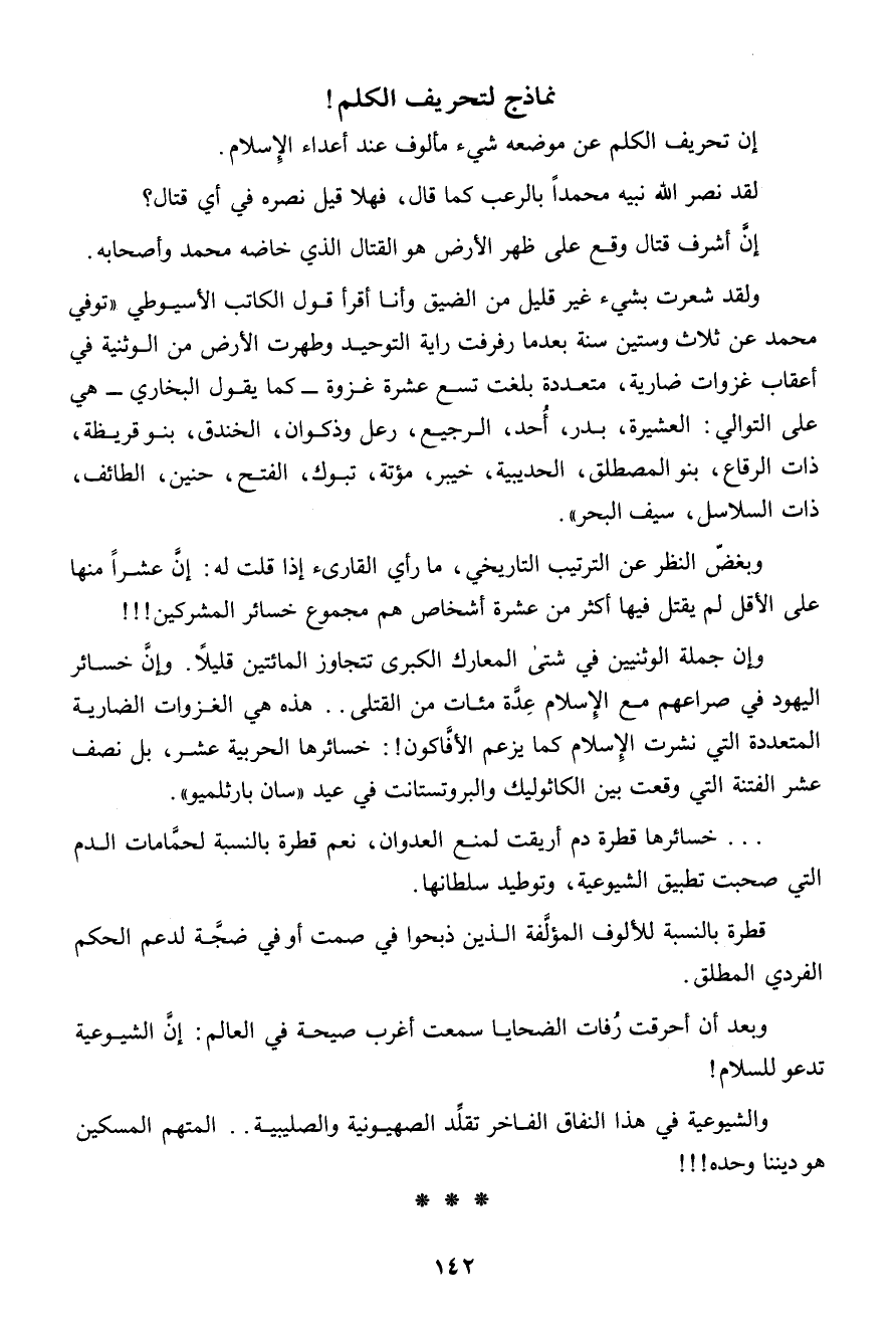 إن أشرف قتال وقع على ظهر الأرض هو القتال الذى خاضه محمد وأصحابه..