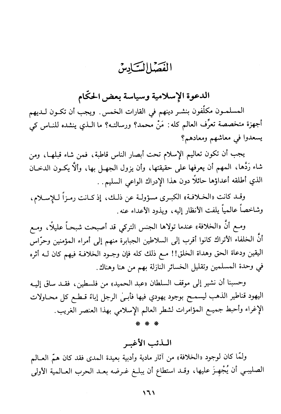وقد كانت " الخلافة " الكبرى مسئولة عن ذلك، إذ كانت رمزاً للإسلام، وشاخصاً عالمياً يلفت الأنظار إليه، ويذود الأعداء عنه.