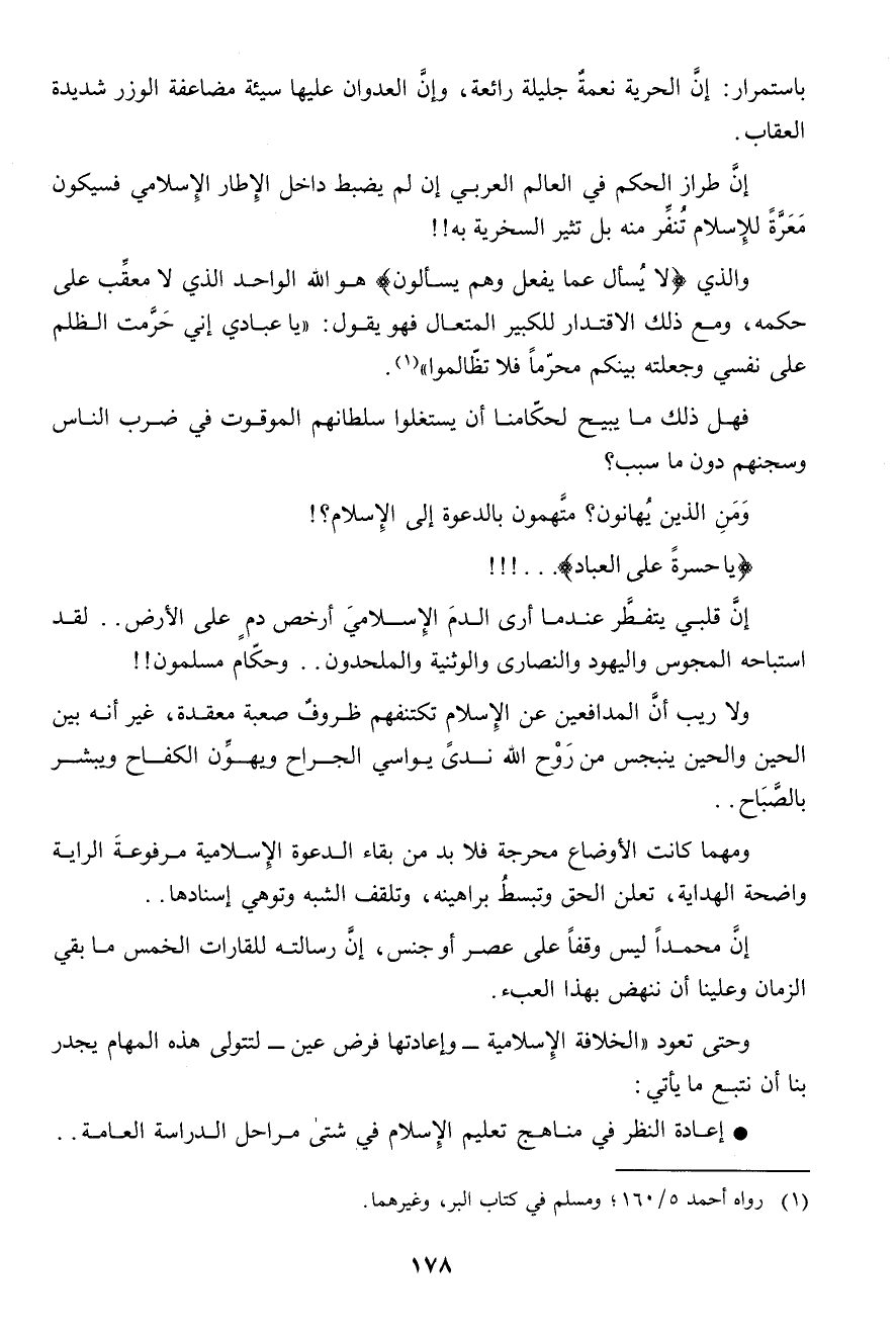 إن طراز الحكم فى العالم العربى إن لم يضبط داخل الإطار الإسلامى فسيكون معرة للإسلام تُنفِّر منه بل تثير السخريةَ به!!