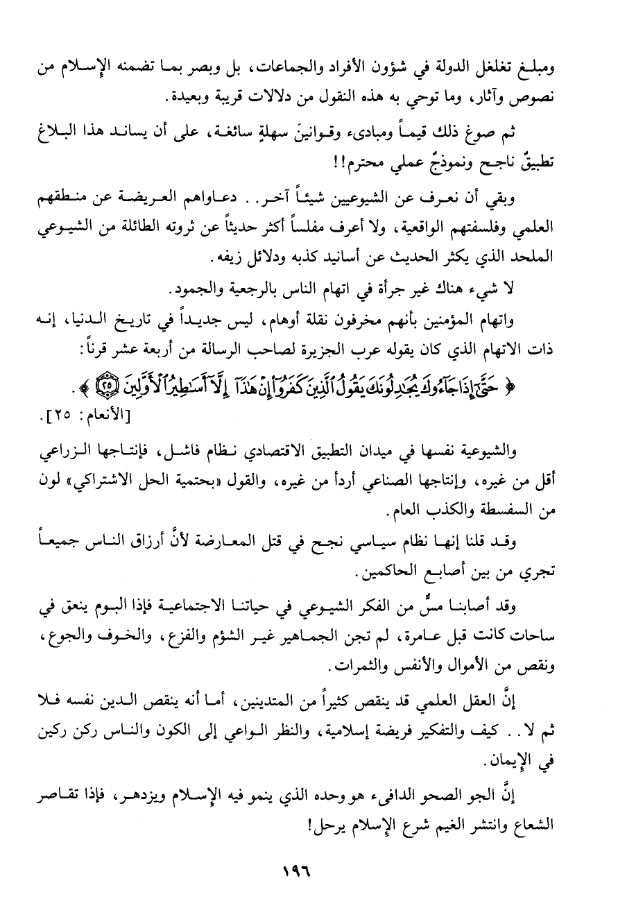 وقد أصابنا مس من الفكر الشيوعى فى حياتنا الاجتماعية فإذا اليوم ينعق فى ساحات كانت قبل عامرة، لم تجن الجماهير غير الشؤم والفزع والخوف والجوع ونقص من الأموال والأنفس والثمرات..