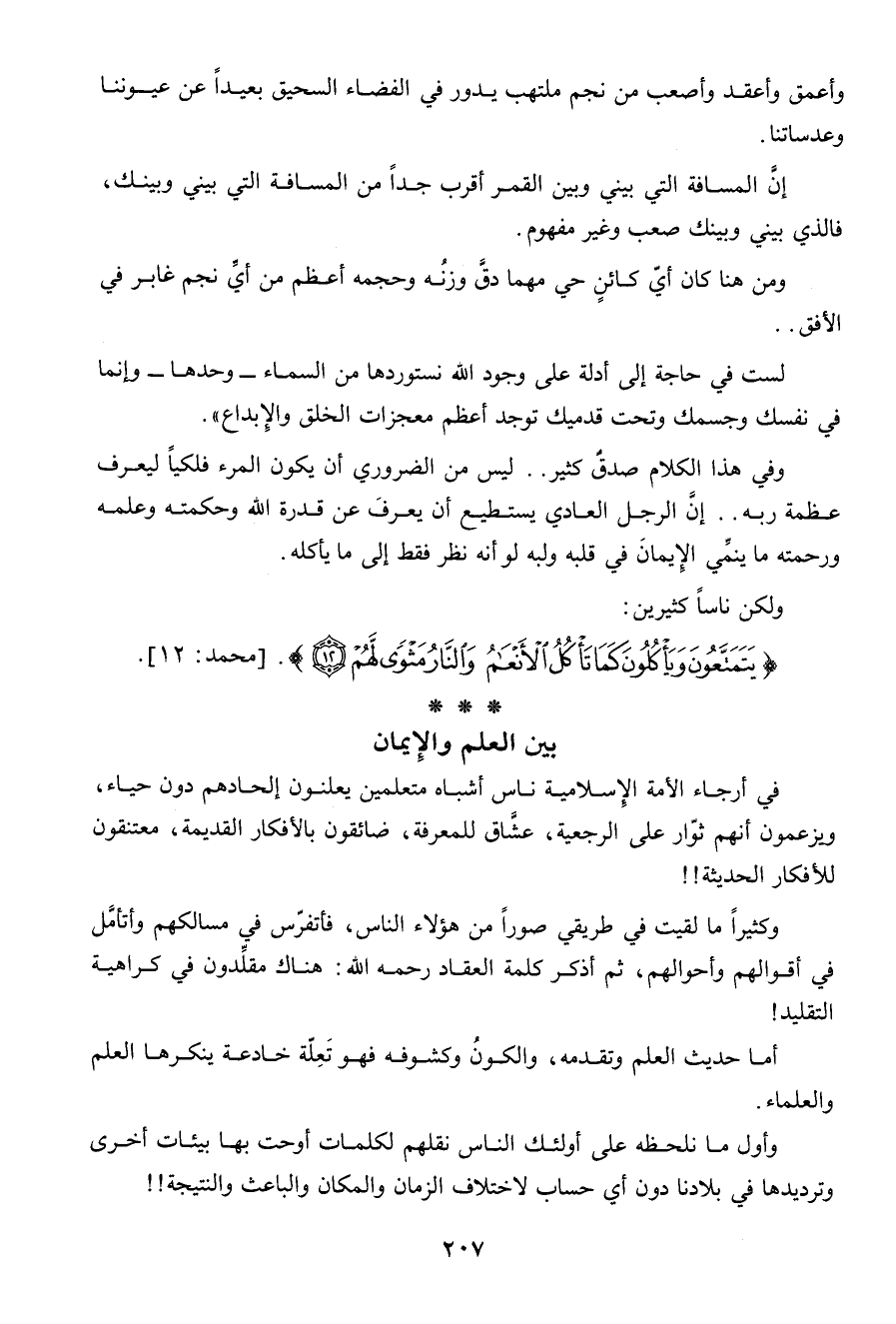 أما حديث العلم وتقدمه، والكون وكشوفه فهو تعلة خادعة ينكرها العلم والعلماء..