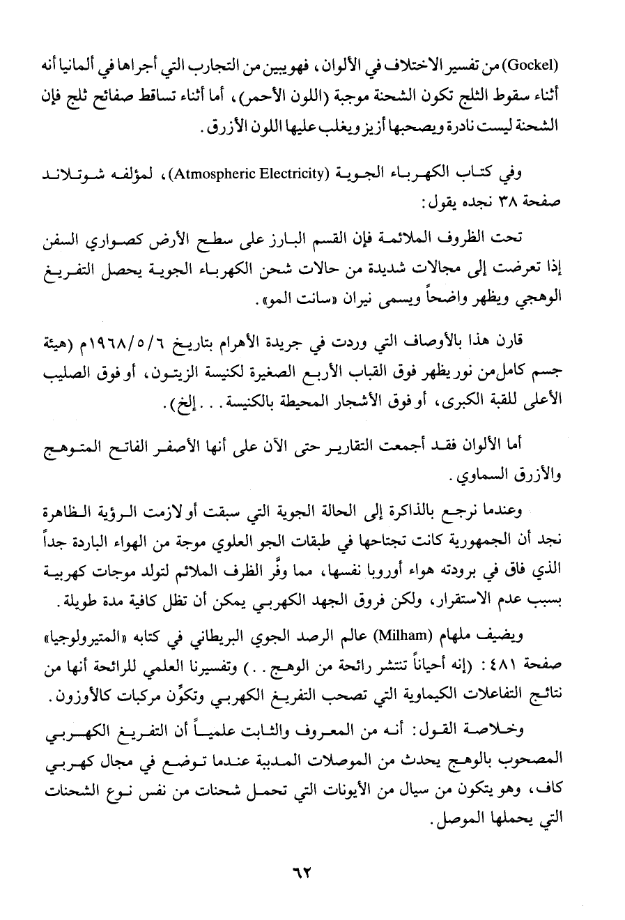 " وفى كتاب الكهرباء الجوية Atmospheric Electricity لمؤلفه شوتلاند صفحة 38 نجده يقول:..