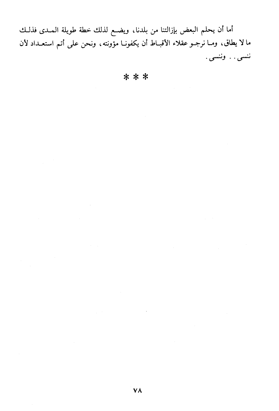 أما أن يحلم البعض بإزالتنا من بلدنا، ويضع لذلك خطة طويلة المدى، فذلك ما لا يطاق، وما نرجو عقلاء الأقباط أن يكفونا مؤونته، ونحن على أتم استعداد لأن ننسى.. وننسى..