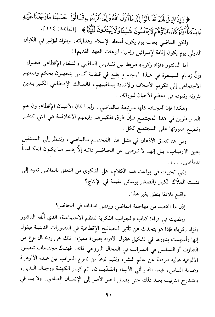 ولكن الماضى يعاب يوم يكون أمجاد الإسلام وهداياته، ويترك ليؤثر فى الكيان الدولى يوم يكون إقامة لإسرائيل وإحياء لترهات العهد القديم!!