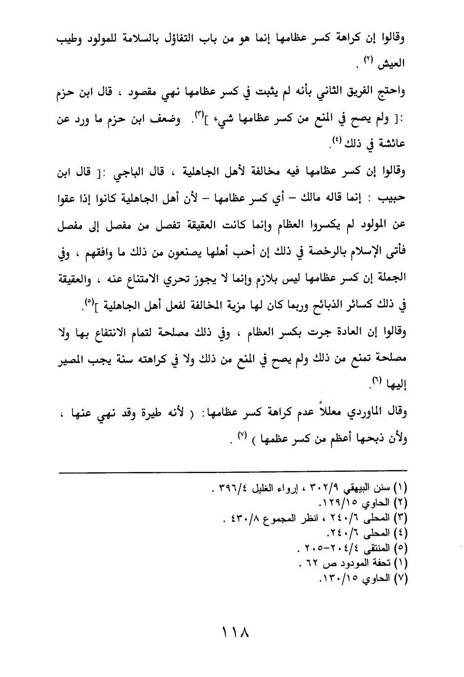وقالوا إن كراهة كسر عظامها إنما هو من باب التفاؤل بالسلامة للمولود وطيب العيش (¬1).