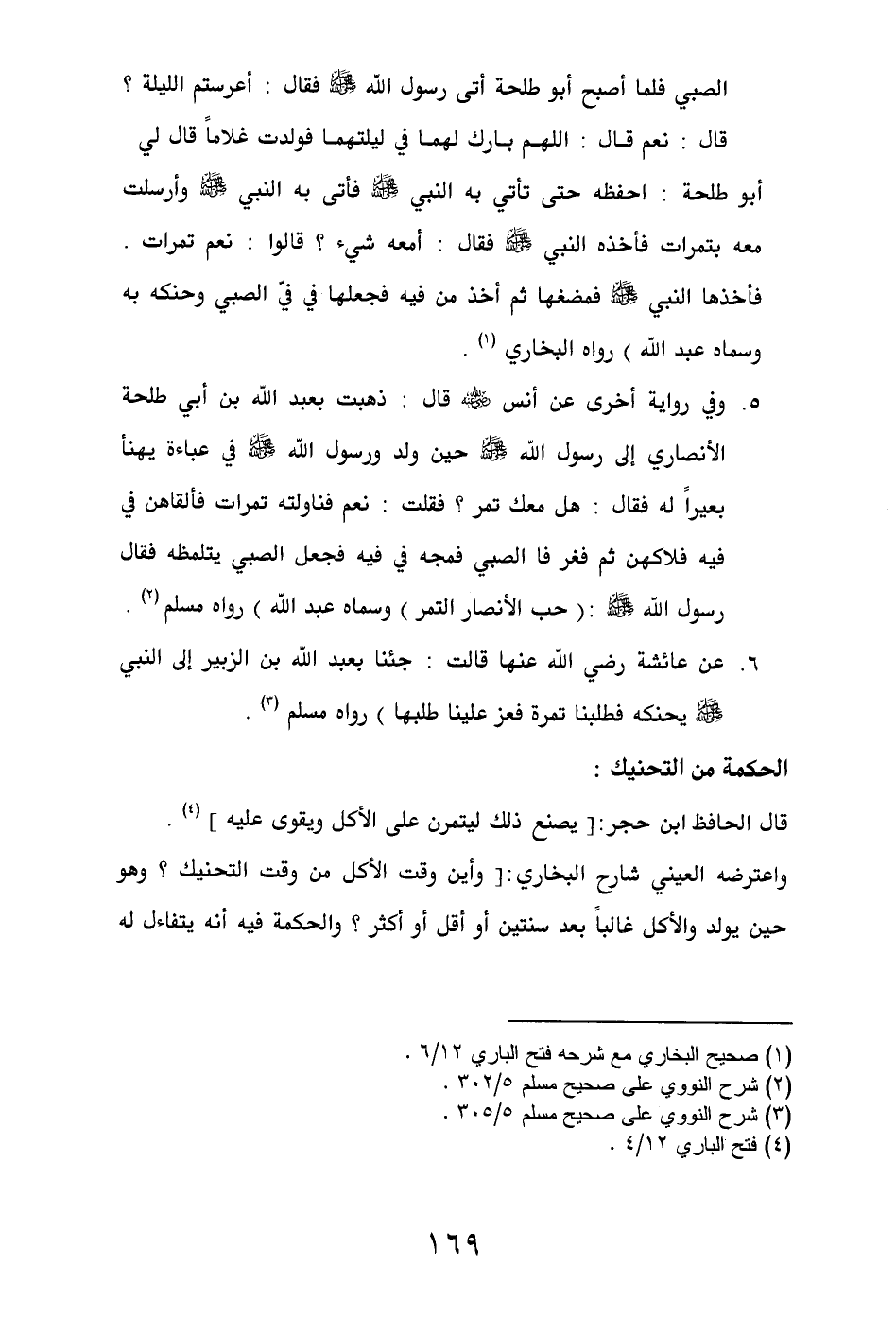 8. عن عائشة رضي الله عنها قالت: جئنا بعبد الله بن الزبير إلى النبي - صلى الله عليه وسلم - يحنكه فطلبنا تمرة فعز علينا طلبها) رواه مسلم (¬3).