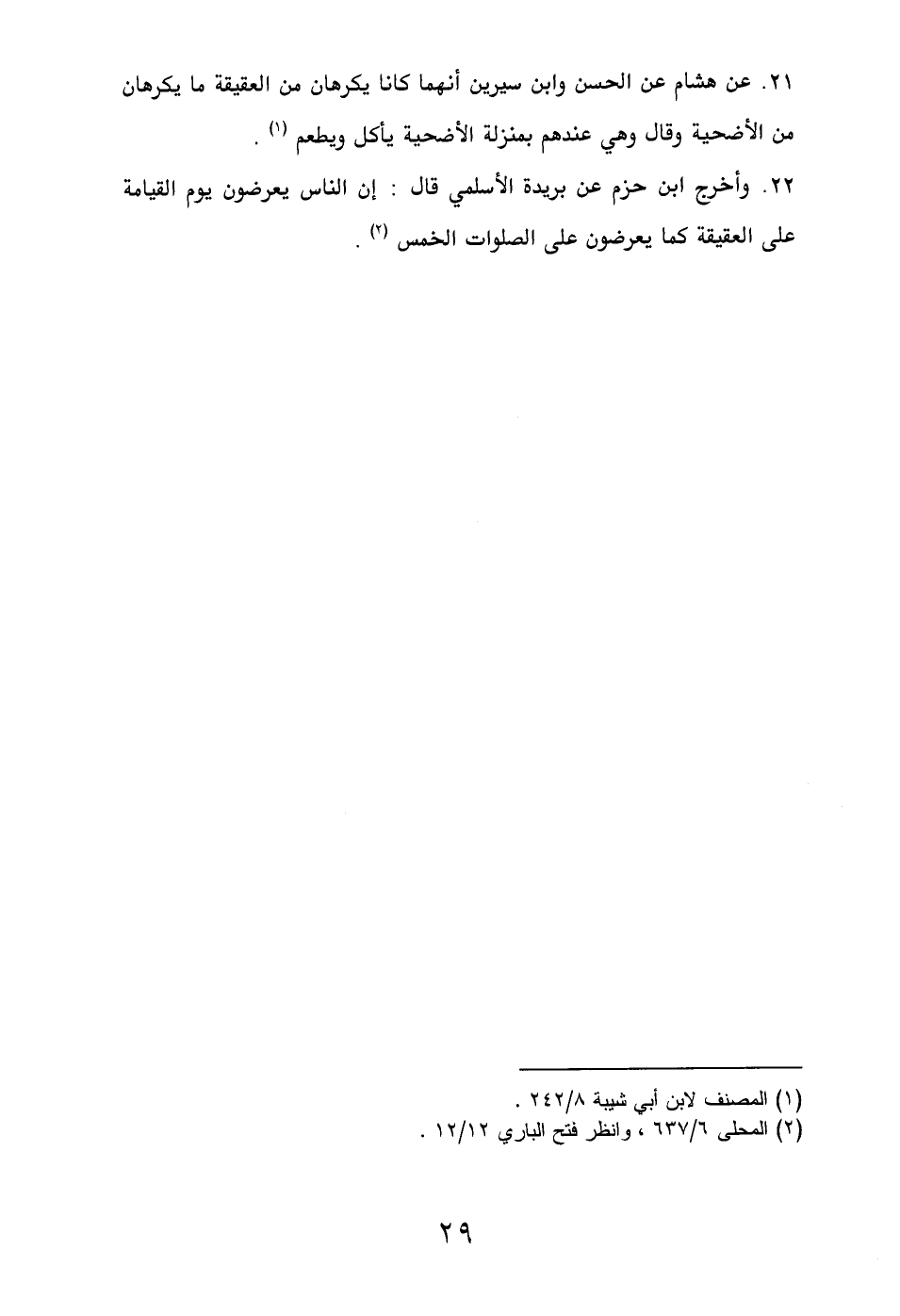 22. وأخرج ابن حزم عن بريدة الأسلمي قال: إن الناس يعرضون يوم القيامة على العقيقة كما يعرضون على الصلوات الخمس (¬2).