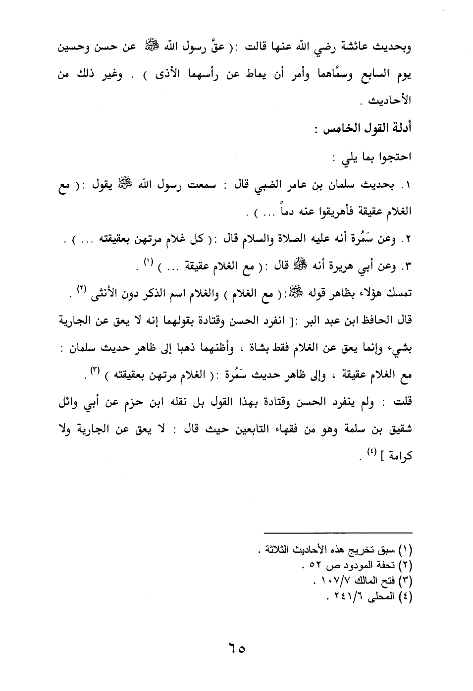 1. بحديث سلمان بن عامر الضبي قال: سمعت رسول الله - صلى الله عليه وسلم - يقول: (مع الغلام عقيقة فأهريقوا عنه دماً ... ).