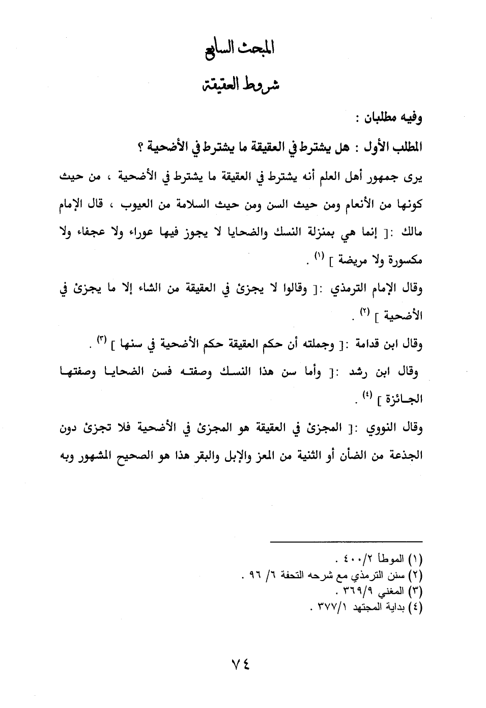 المطلب الأول: هل يشترط في العقيقة ما يشترط في الأضحية؟
