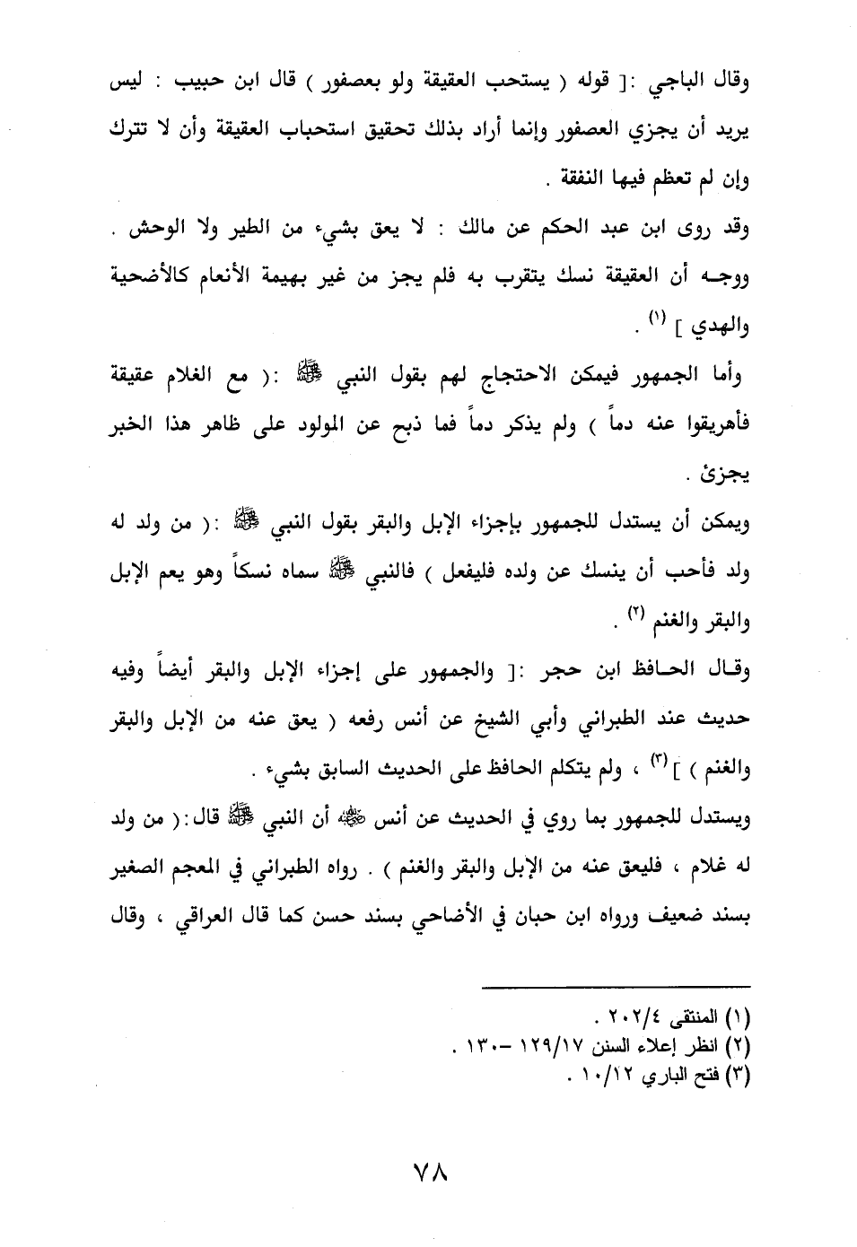 ويمكن أن يستدل للجمهور بإجزاء الإبل والبقر بقول النبي - صلى الله عليه وسلم -: (من ولد له ولد فأحب أن ينسك عن ولده فليفعل) فالنبي - صلى الله عليه وسلم - سماه نسكاً وهو يعم الإبل والبقر والغنم (¬2).