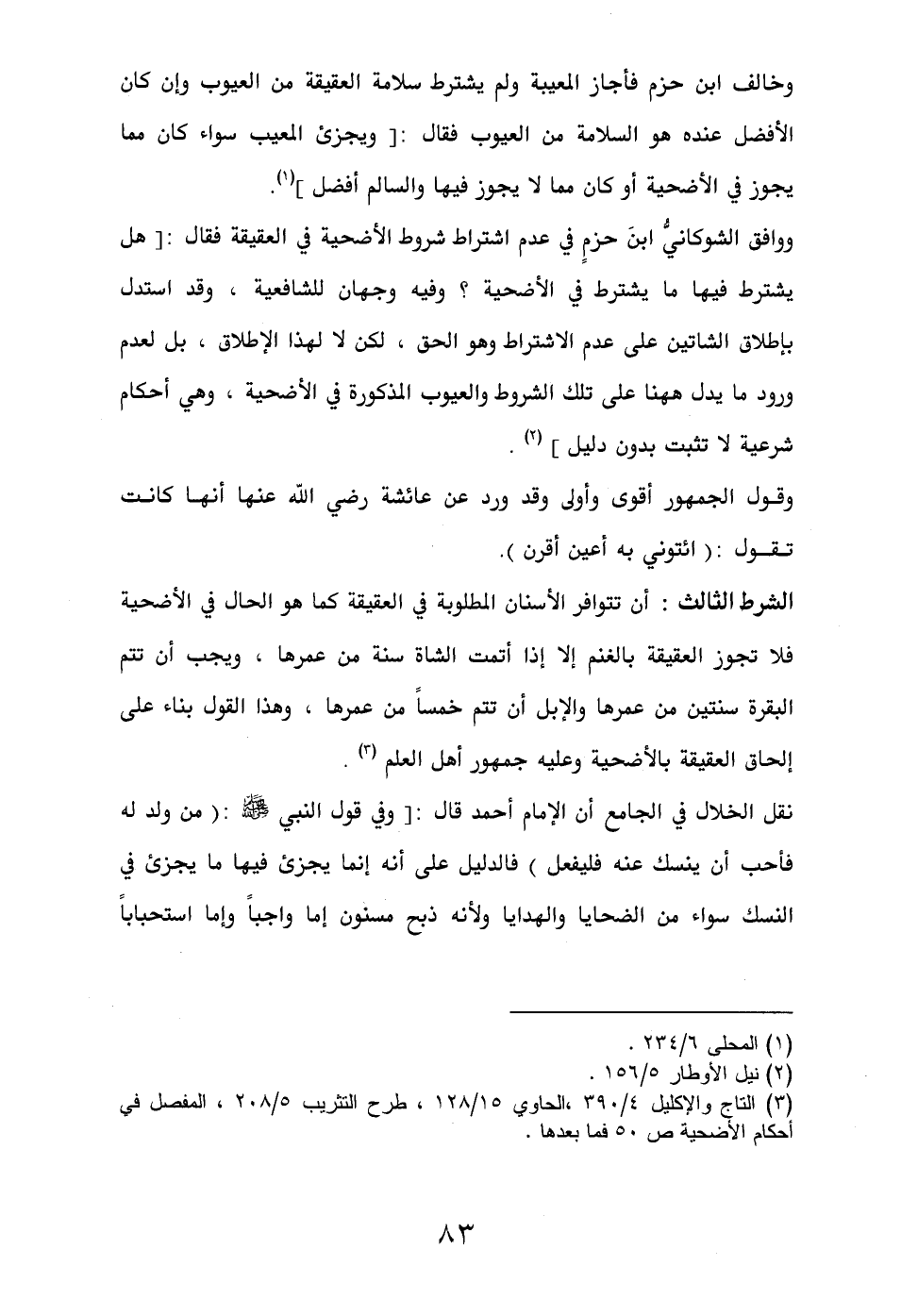 (¬3) التاج والإكليل 4/ 390،الحاوي 15/ 128، طرح التثريب 5/ 208، المفصل في أحكام الأضحية ص 50 فما بعدها.