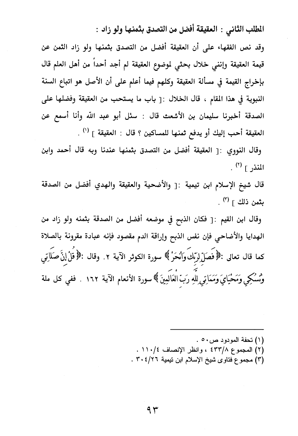 المطلب الثاني: العقيقة أفضل من التصدق بثمنها ولو زاد: