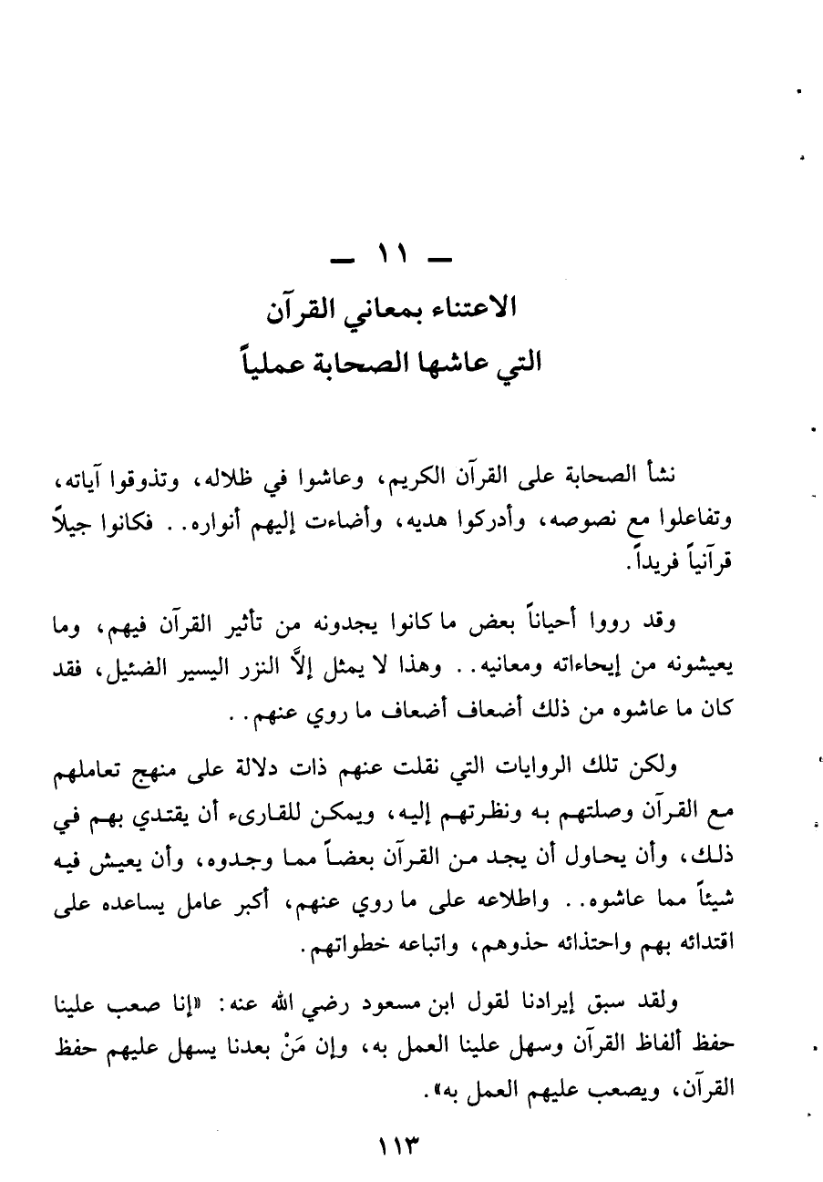- 11 - الاعتناء بمعانى القرآن التى عاشها الصحابة عمليا