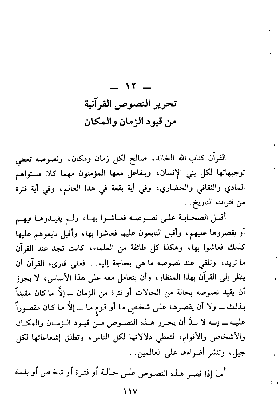 - 12 - تحرير النصوص القرآنية من قيود الزمان والمكان