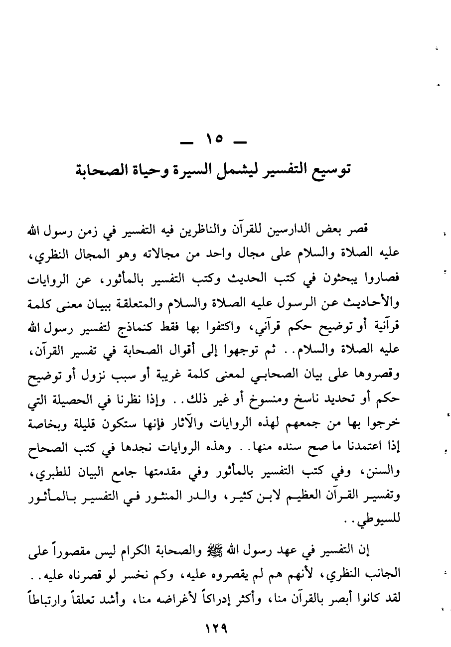 - 15 - توسيع التفسير ليشمل السيرة وحياة الصحابة