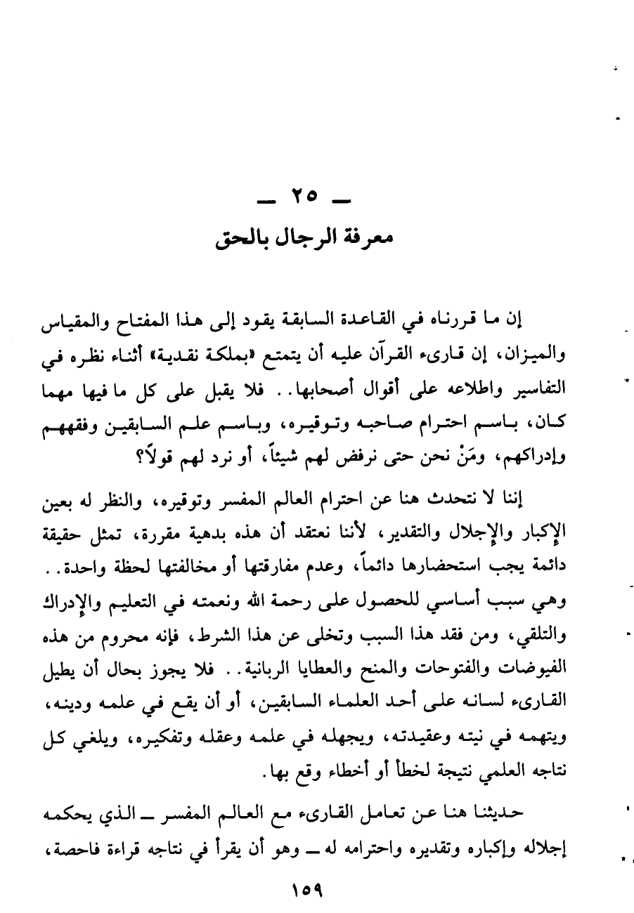 إننا لا نتحدث هنا عن احترام العالم المفسر وتوقيره، والنظر له بعين الإكبار والإجلال والتقدير، لأننا نعتقد أن هذه بدهية مقررة، تمثل حقيقة دائمة يجب استحضارها دائما، وعدم مفارقتها أو مخالفتها لحظة واحدة ..