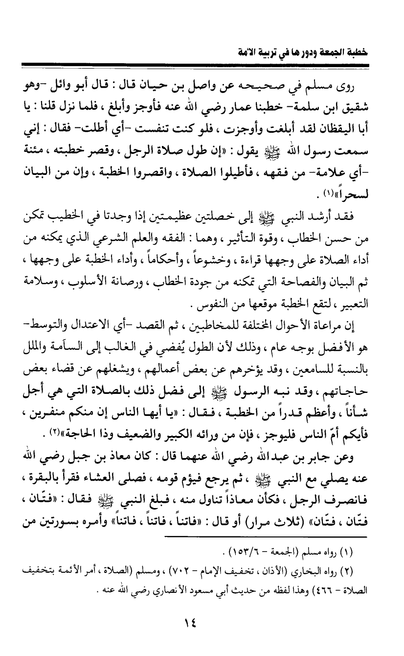 (¬1) رواه مسلم (الجمعة- 6 / 153) .