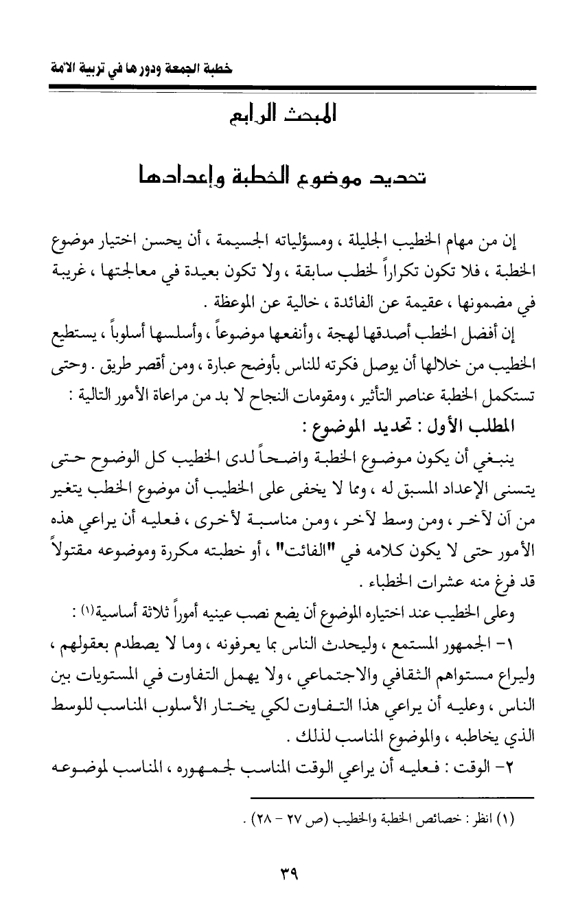 [المبحث الرابع تحديد موضوع الخطبة وإعدادها]