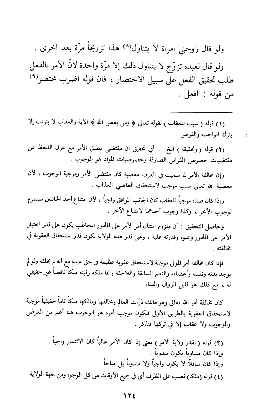 وَلَو قَالَ لعَبْدِهِ تزوج لَا يتَنَاوَل ذَلِك إِلَّا مرّة وَاحِدَة لِأَن الْأَمر بِالْفِعْلِ طلب تَحْقِيق الْفِعْل على سَبِيل الِاخْتِصَار فَإِن قَوْله اضْرِب مُخْتَصر من قَوْله افْعَل