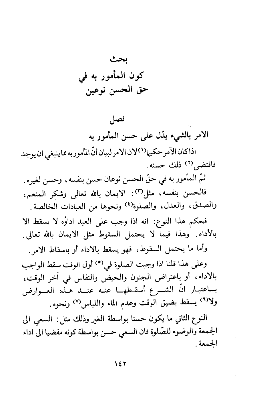ثمَّ الْمَأْمُور بِهِ فِي حق الْحسن نَوْعَانِ حسن بِنَفسِهِ وَحسن لغيره
