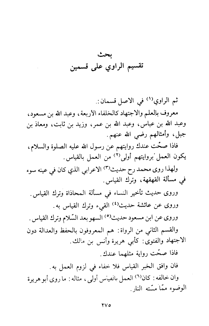 وَالْقسم الثَّانِي من الروَاة هم المعروفون بِالْحِفْظِ وَالْعَدَالَة دون الِاجْتِهَاد وَالْفَتْوَى كَأبي هُرَيْرَة وَأنس بن مَالك