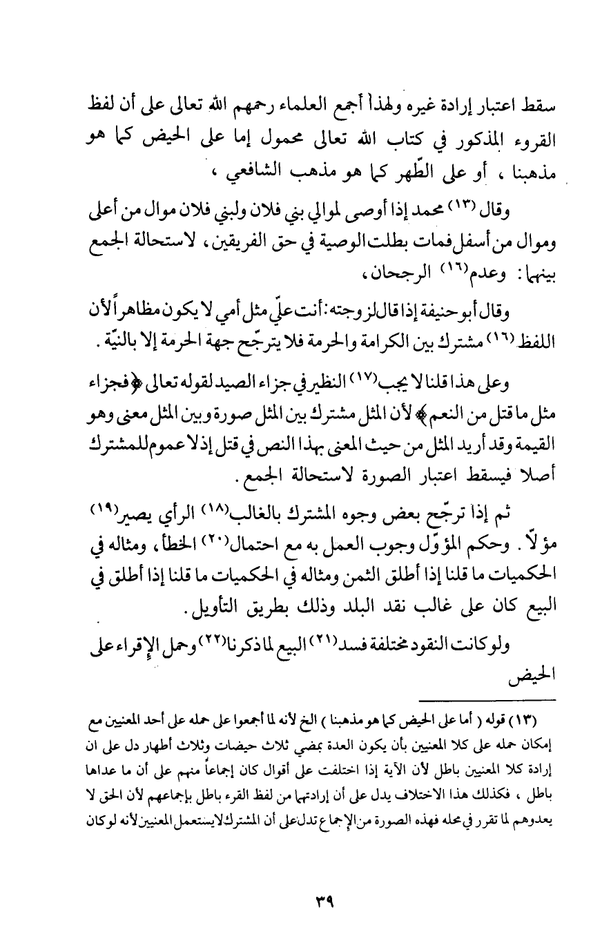 سقط اعْتِبَار إِرَادَة غَيره وَلِهَذَا أجمع الْعلمَاء رَحِمهم الله تَعَالَى على أَن لفظ القروء الْمَذْكُور فِي كتاب الله تَعَالَى مَحْمُول إِمَّا على الْحيض كَمَا هُوَ مَذْهَبنَا أَو على الطُّهْر كَمَا هُوَ مَذْهَب الشَّافِعِي