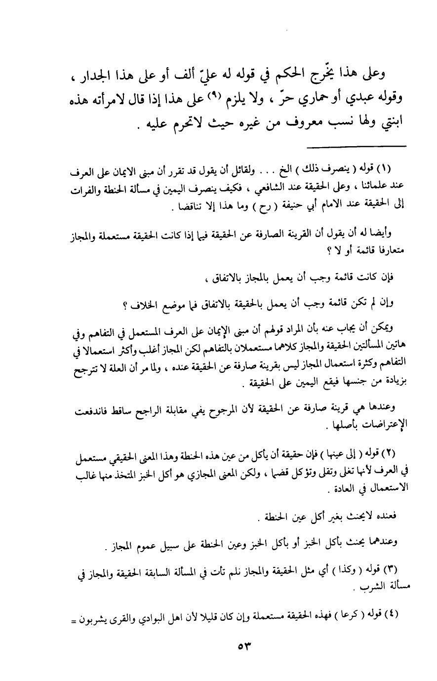وعَلى هَذَا يخرج الحكم فِي قَوْله لَهُ عَليّ ألف أَو على هَذَا الْجِدَار وَقَوله عَبدِي أَو حماري حر وَلَا يلْزم على هَذَا إِذا قَالَ لامْرَأَته هَذِه ابْنَتي وَلها نسب مَعْرُوف من غَيره حَيْثُ لاتحرم عَلَيْهِ